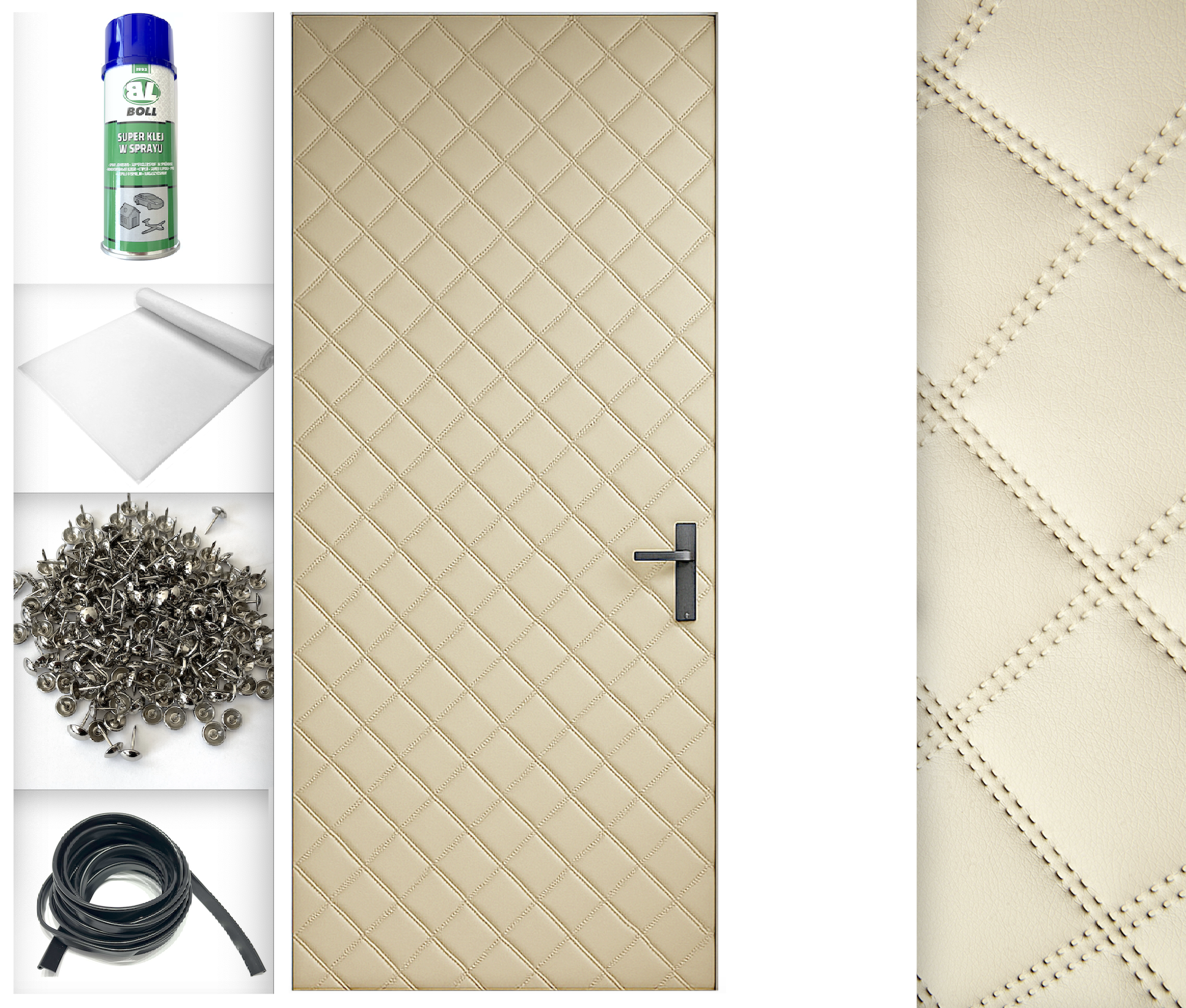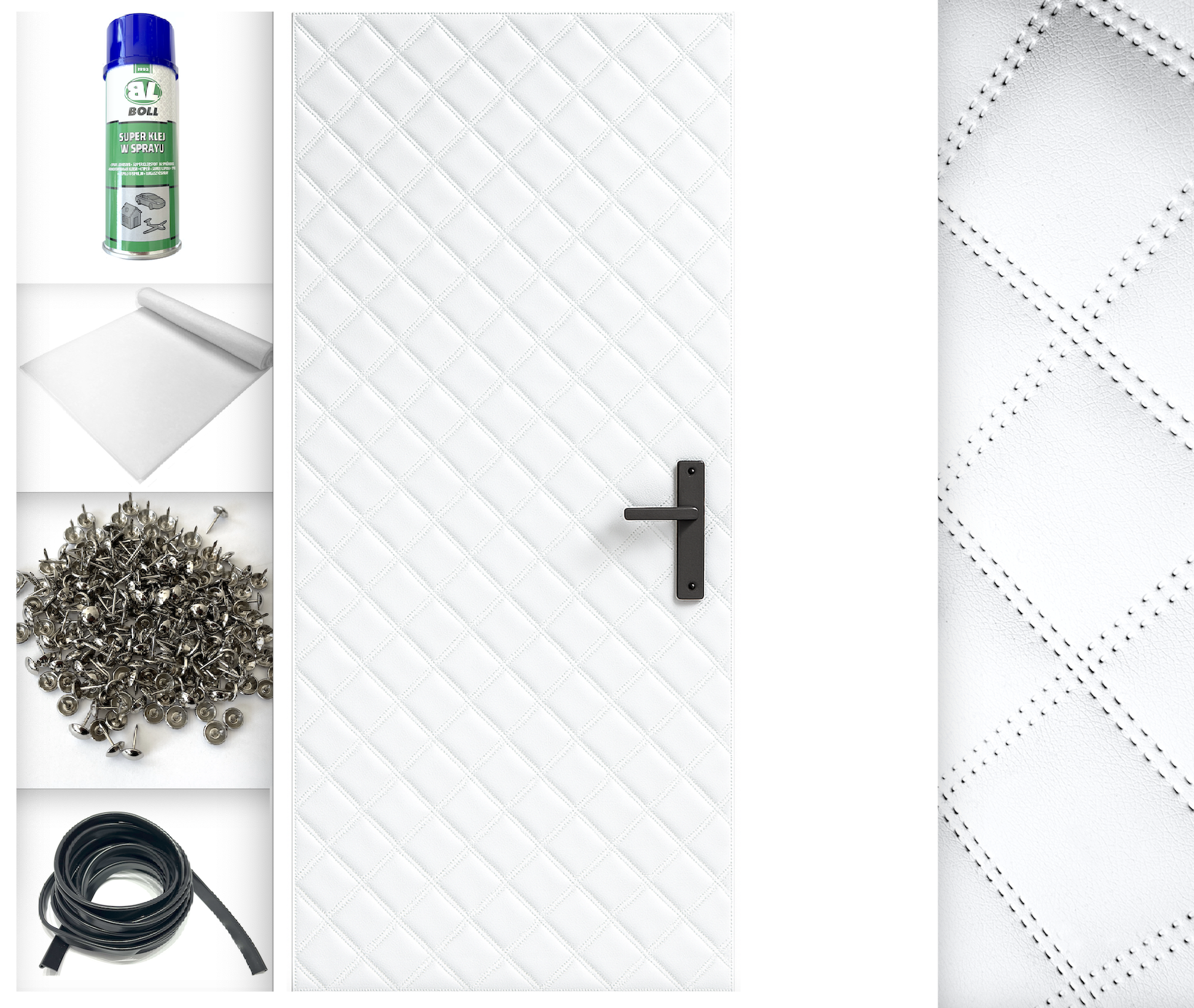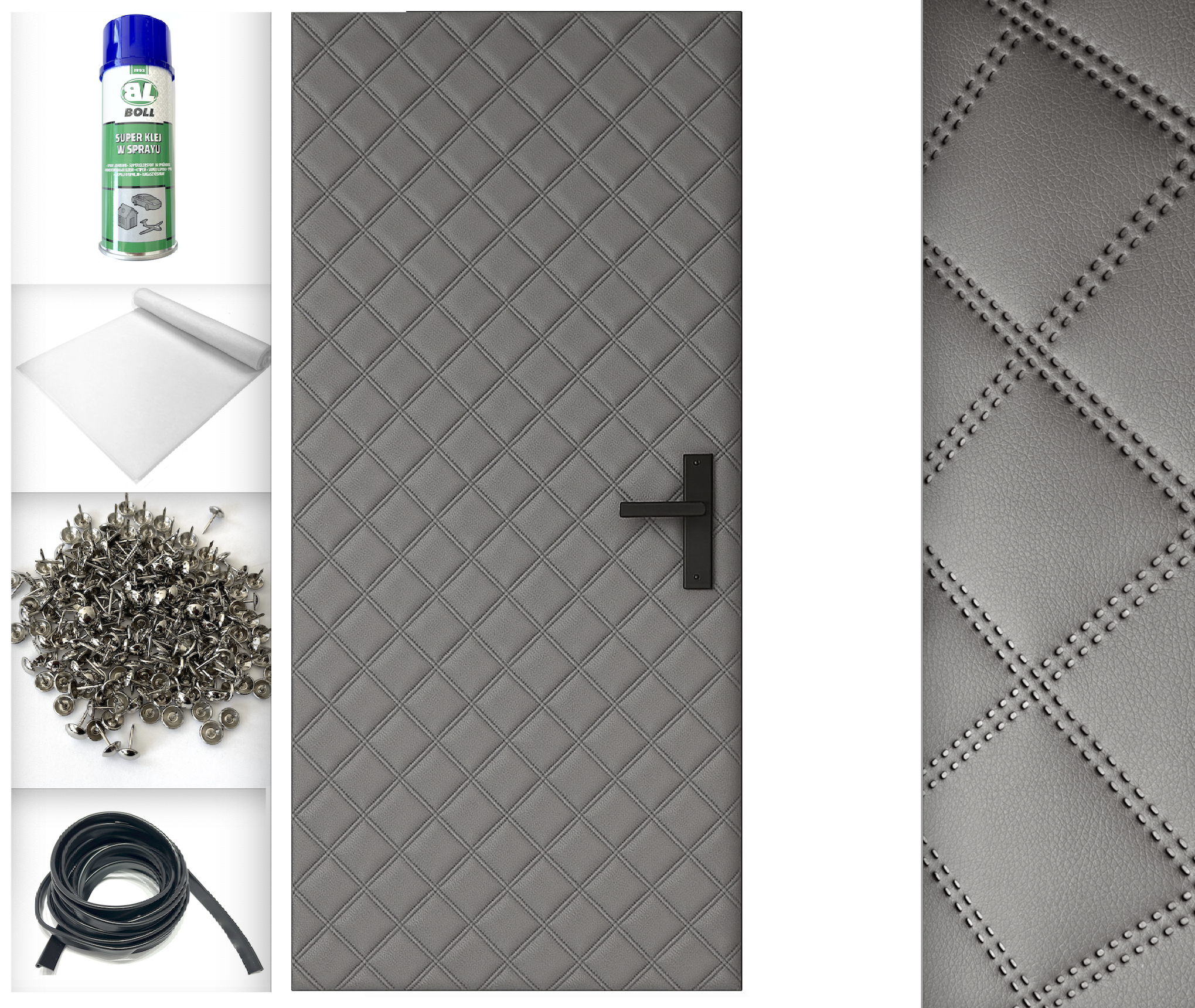 18kpl 115x215 TAPICERKA DRZWIOWA + AKCESORIA kpl do montażu Obicie na drzwi Super efekt wizualny Ocieplenie Uszczelnienie Wygłuszenie