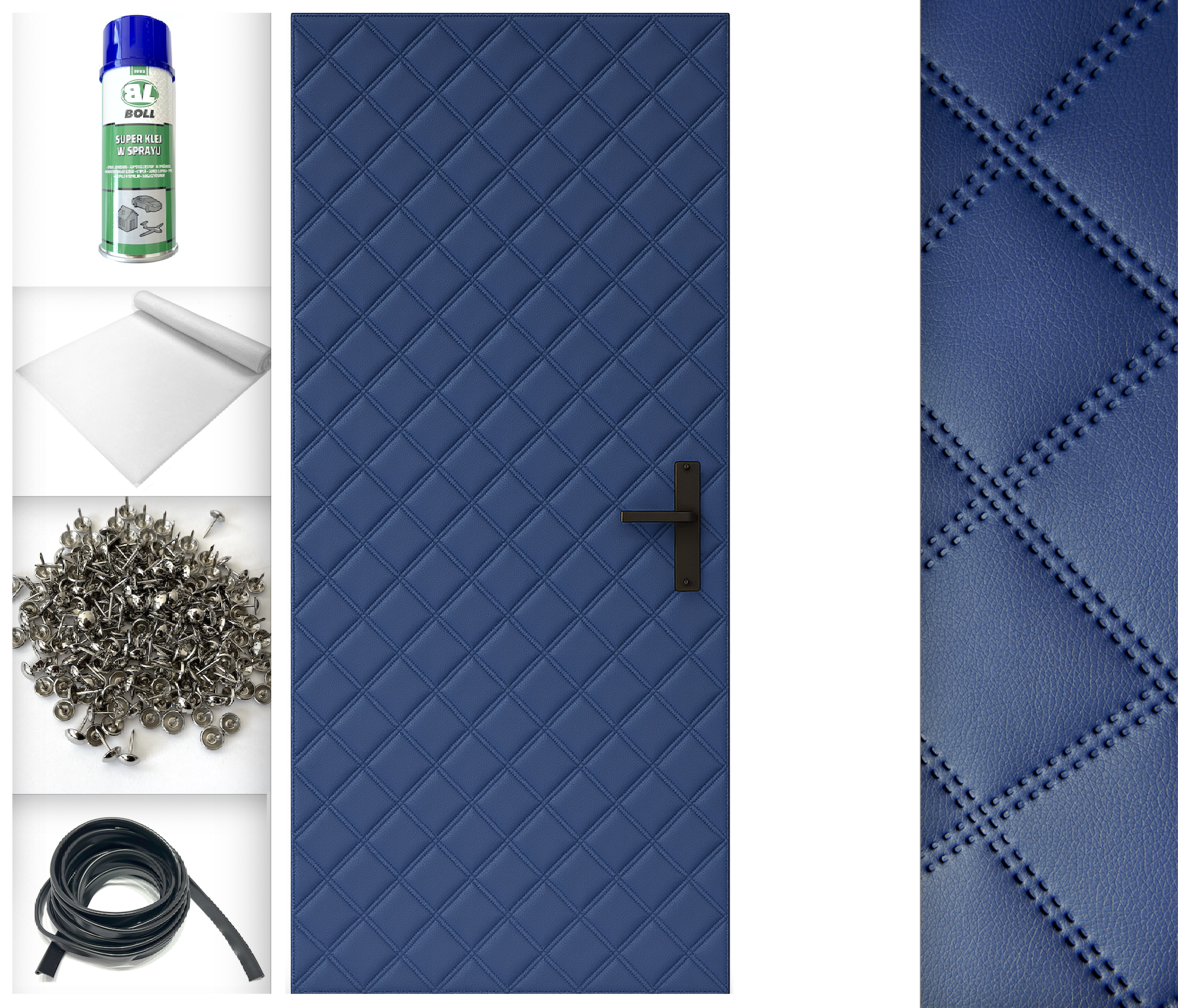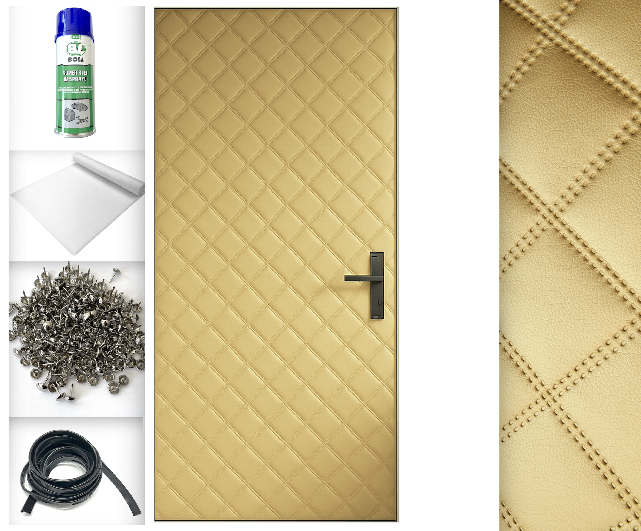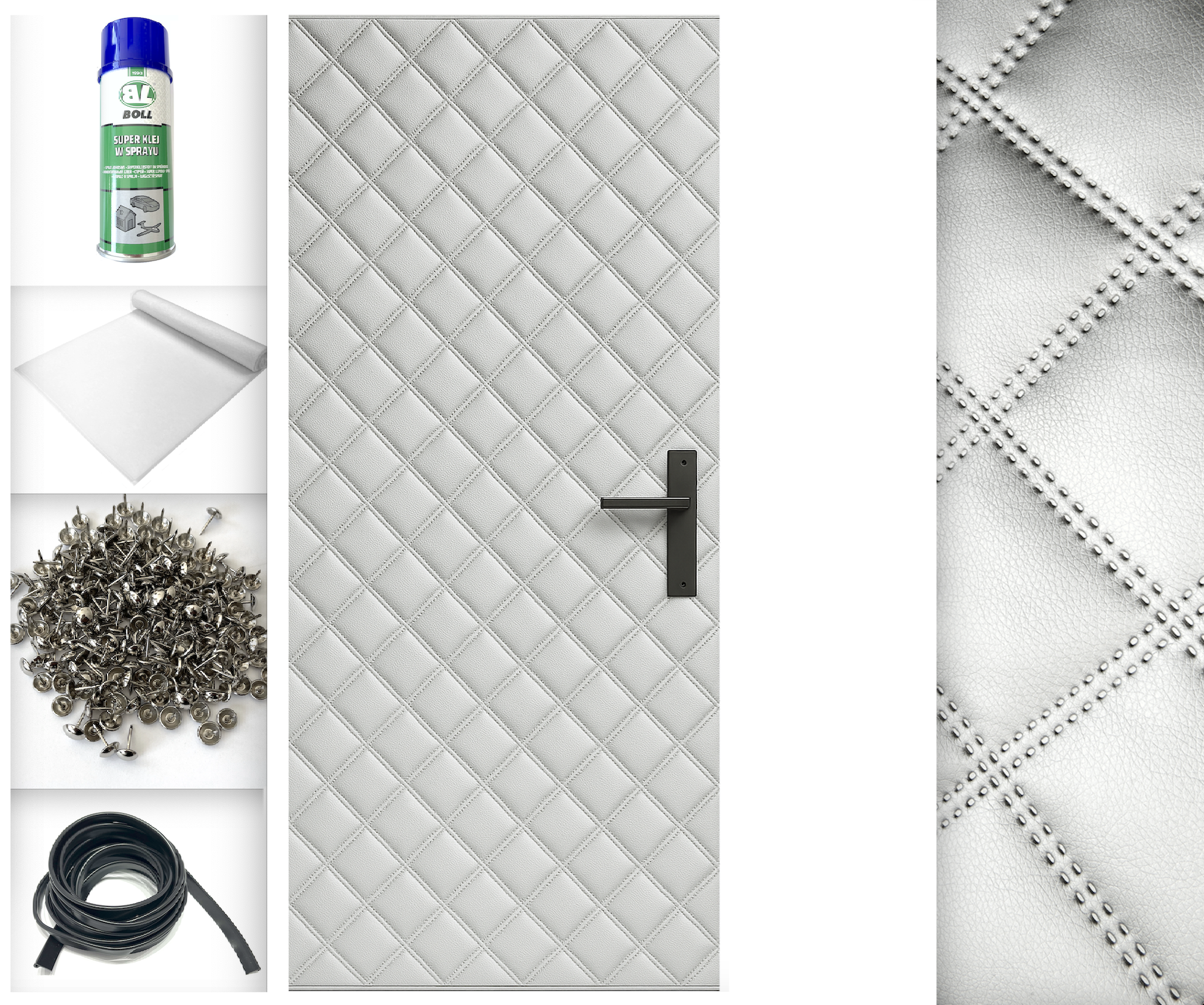18kpl 115x215 TAPICERKA DRZWIOWA + AKCESORIA kpl do montażu Obicie na drzwi Super efekt wizualny Ocieplenie Uszczelnienie Wygłuszenie