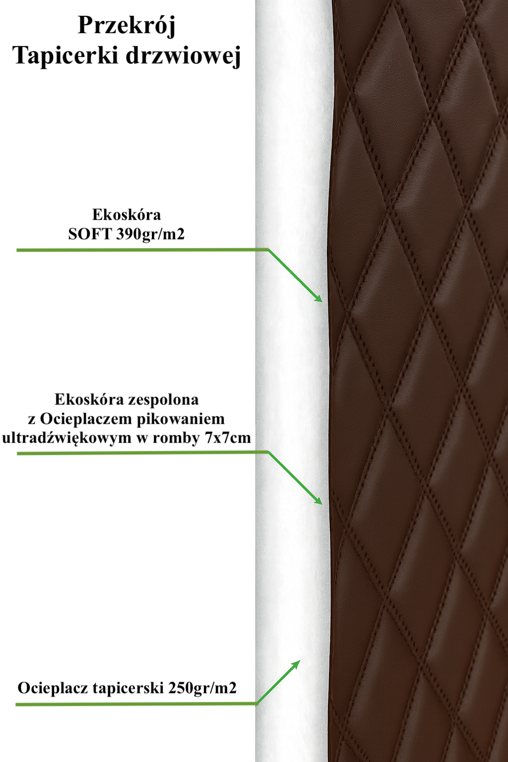 ⭐ Wykonana z eko skóry pikowanej ultradźwiękowo w karo 7x7cm z głębokim efektem 3D, zespolona z grubym ocieplaczem tapicerkim. Spełni oczekiwania nawet najbardziej wymagających klientów.