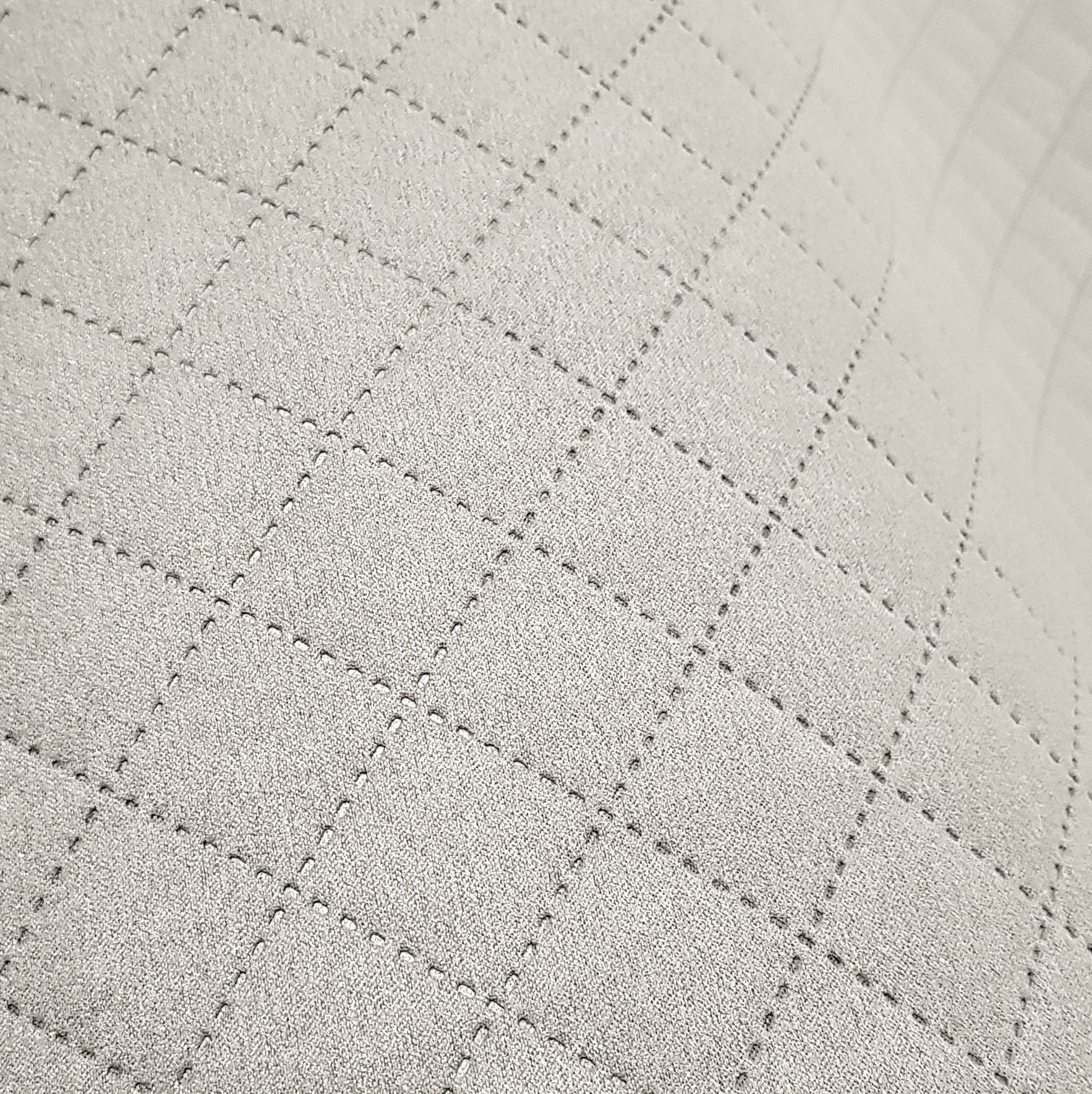 Tkanina obiciowa ALCALA Jasno szara to wyjątkowo przyjemny w dotyku materiał tapicerski, pikowany w romby 3x3 cm techniką ultradźwiękową (bez nici) na ocieplaczu tapicerskim o gramaturze 100 g/m².