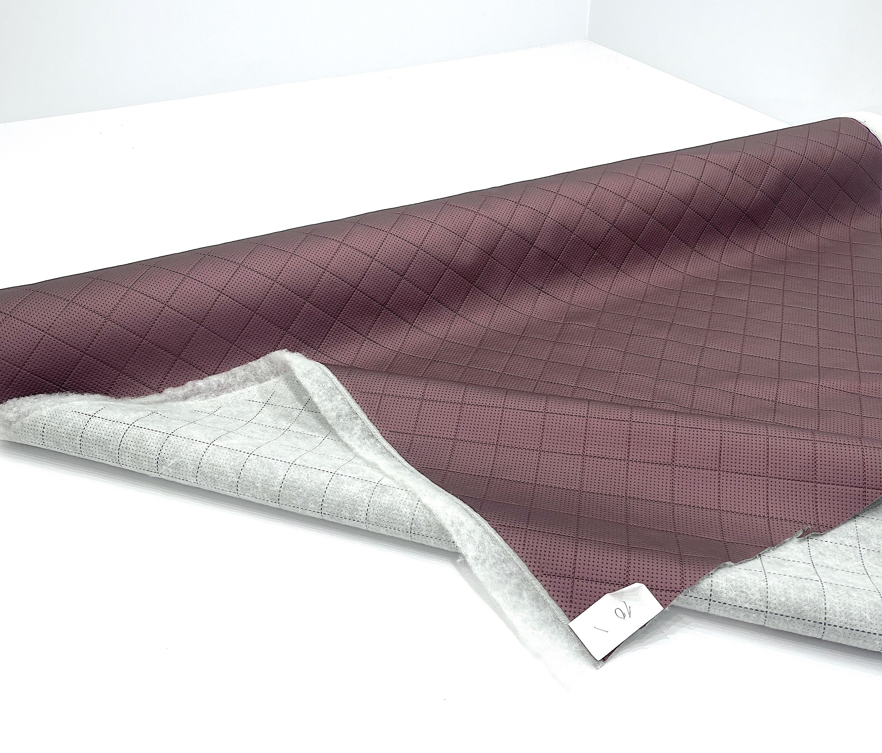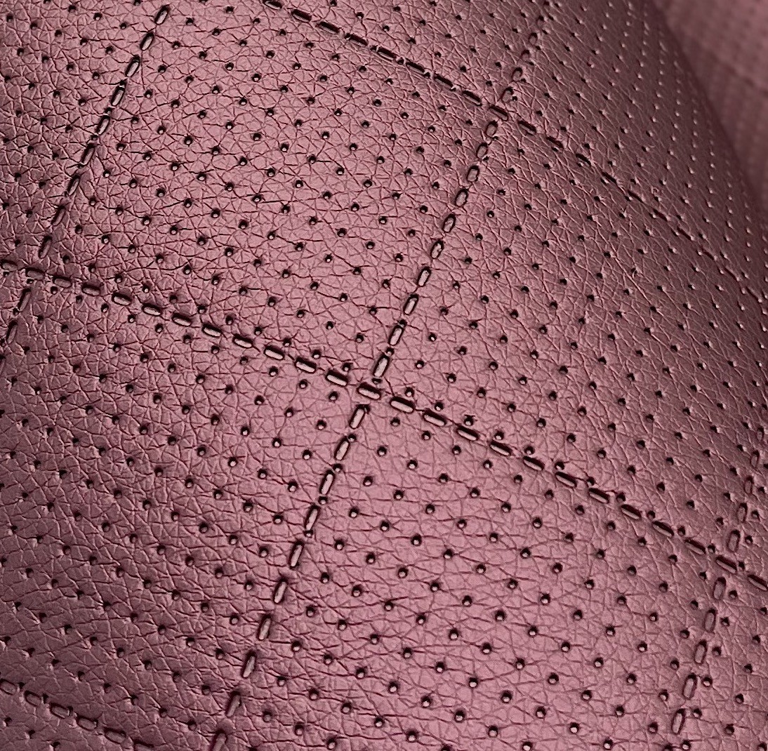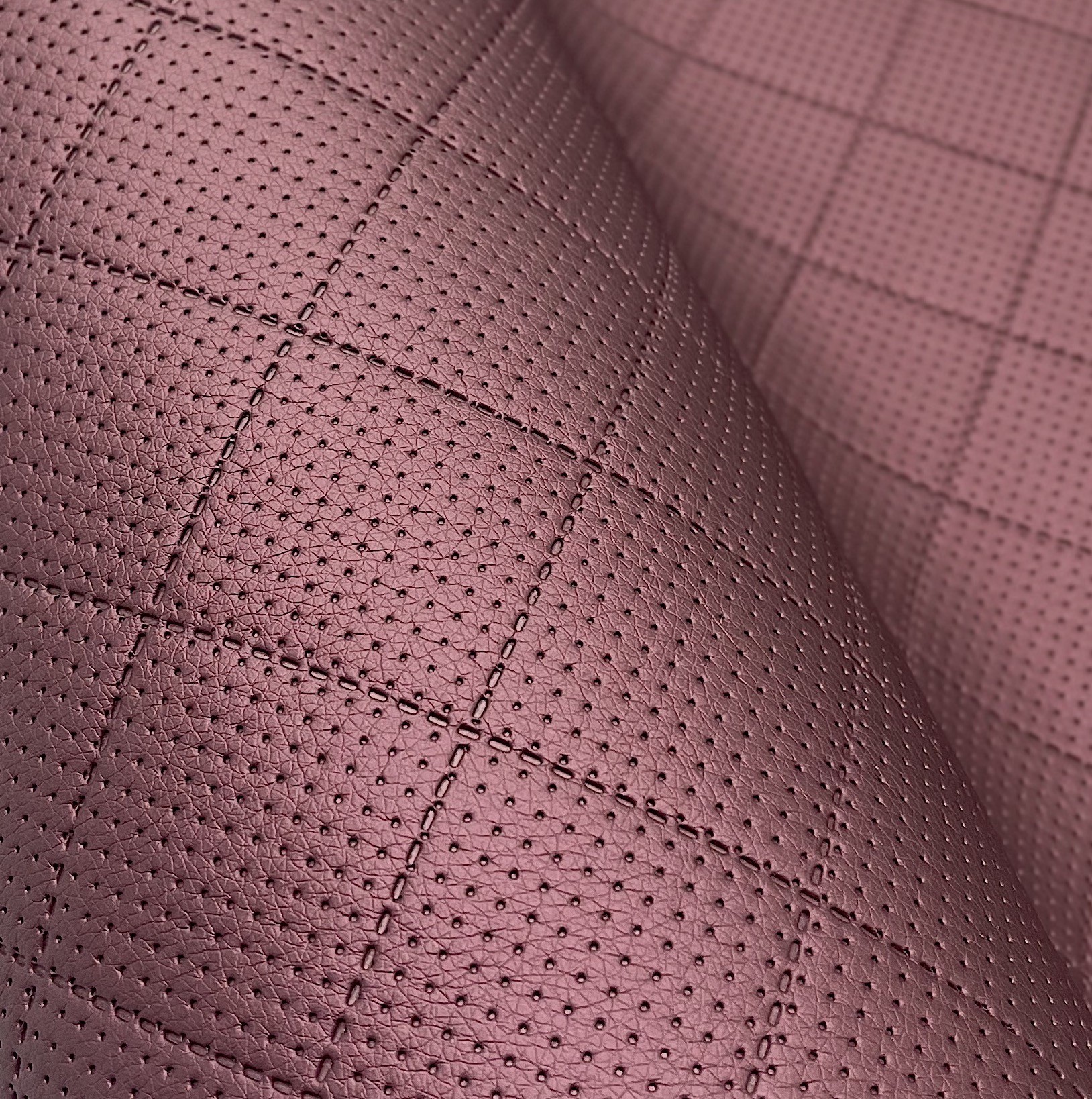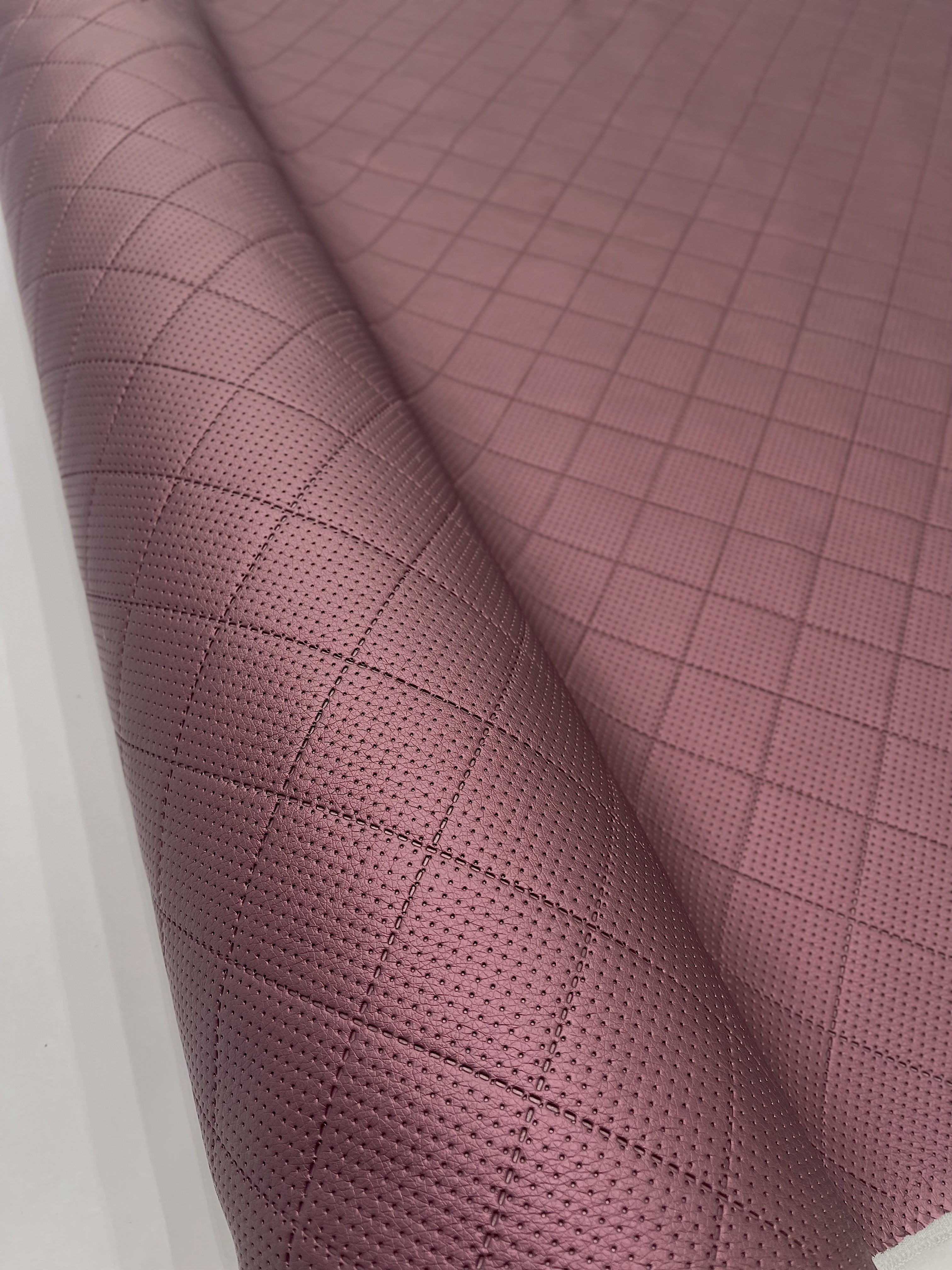 20mb OUTLET Ekoskóra SOFT śliwka pikowana w romby 5x5cm Perforowana Tkanina Skaj Derma Obiciowa Wodoodporna