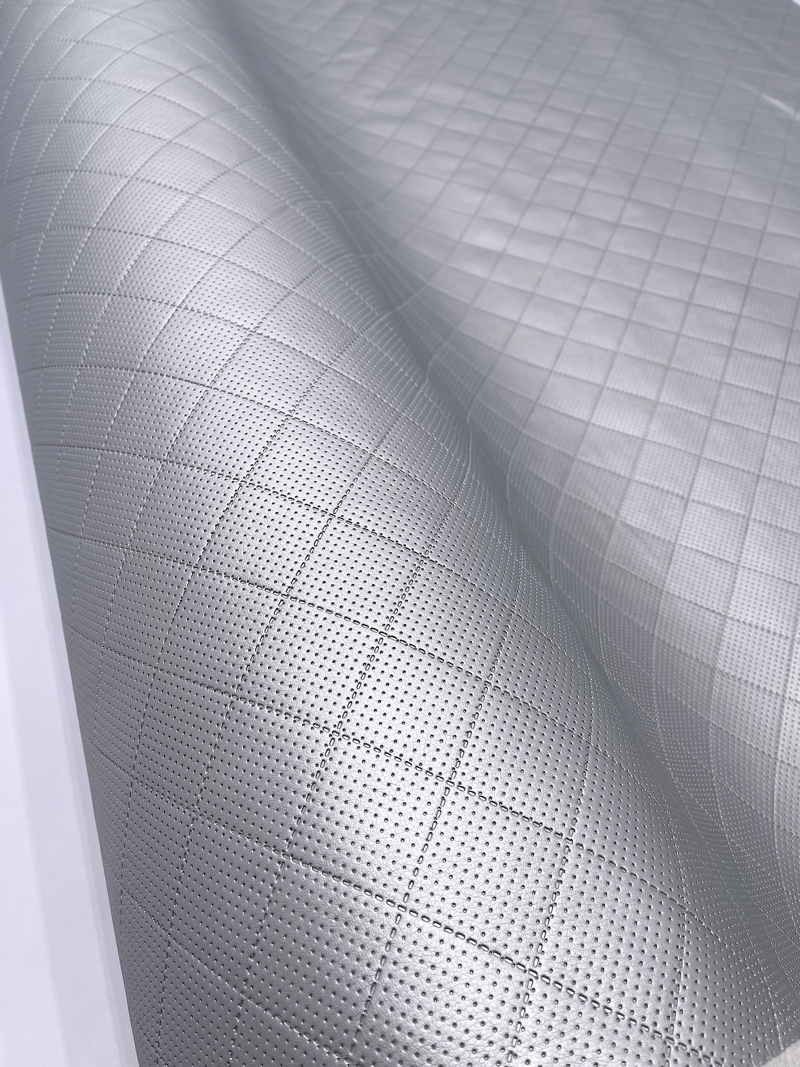 20mb srebrna Ekoskóra OUTLET ⭐ SOFT pikowana w romby 5x5cm + Perforacja ⭐ od firmy ULTRASONIC