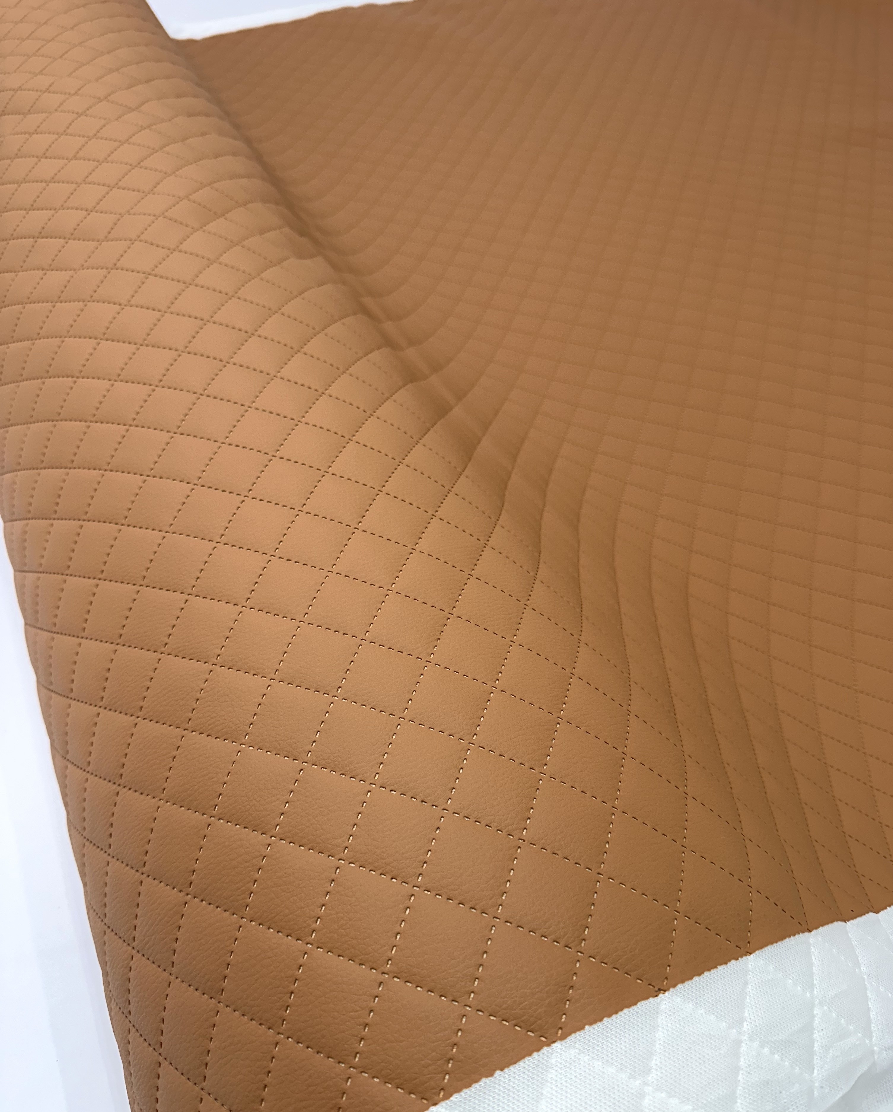 Stwórz eleganckie i trwałe wnętrze z naszą ekoskórą SOFT w kolorze jasno brązowym, pikowaną ultradźwiękowo w romby 3x3 cm na ocieplaczu tapicerskim. To nowoczesny materiał obiciowy, który łączy wysoką wytrzymałość z wyjątkową estetyką i komfortem użytkowania. Idealny do tapicerowania mebli, ścian dekoracyjnych, drzwi, paneli czy wnętrz samochodów.