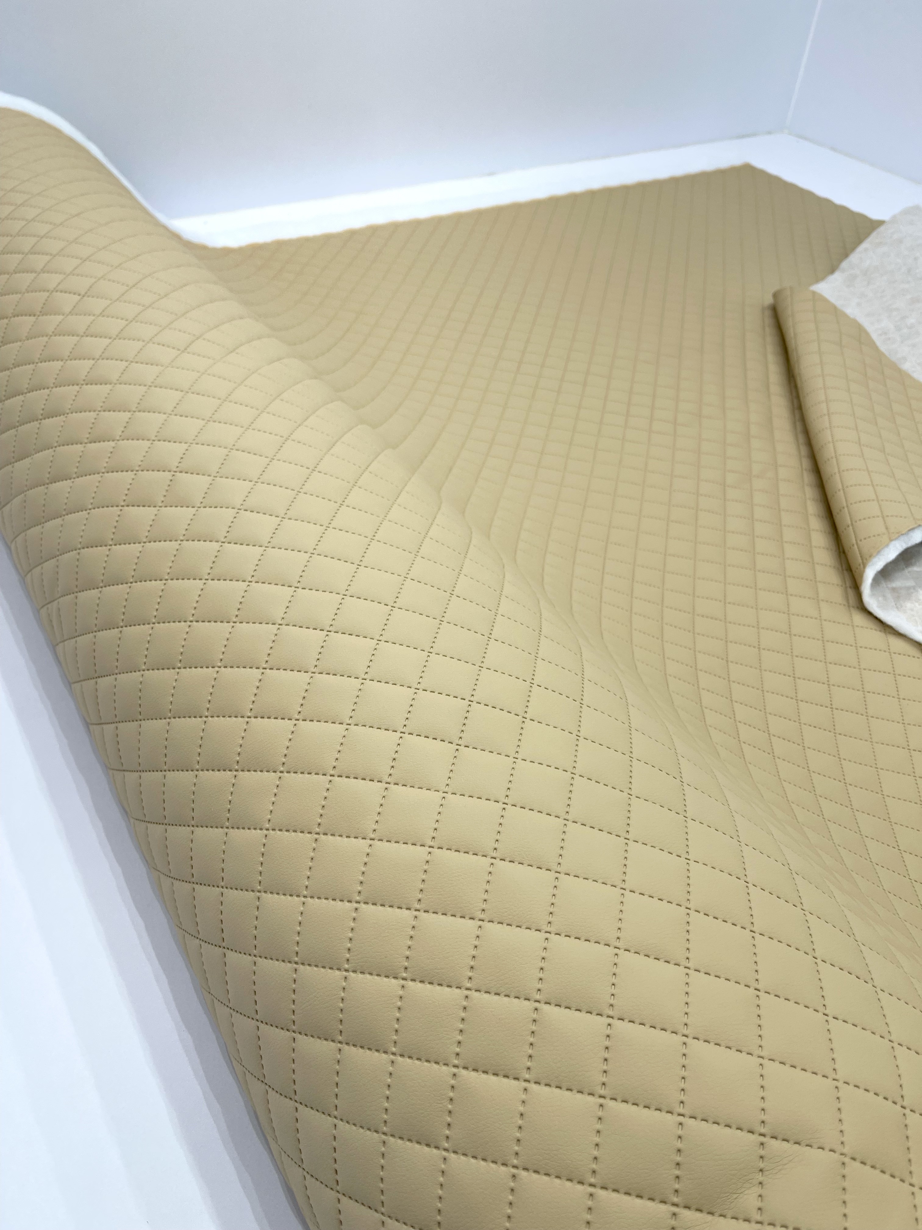 20mb Ekoskóra SOFT Jasny beżowy. Pikowana w romby 3x3 cm. Tkanina obiciowa. Materiał tapicerski.