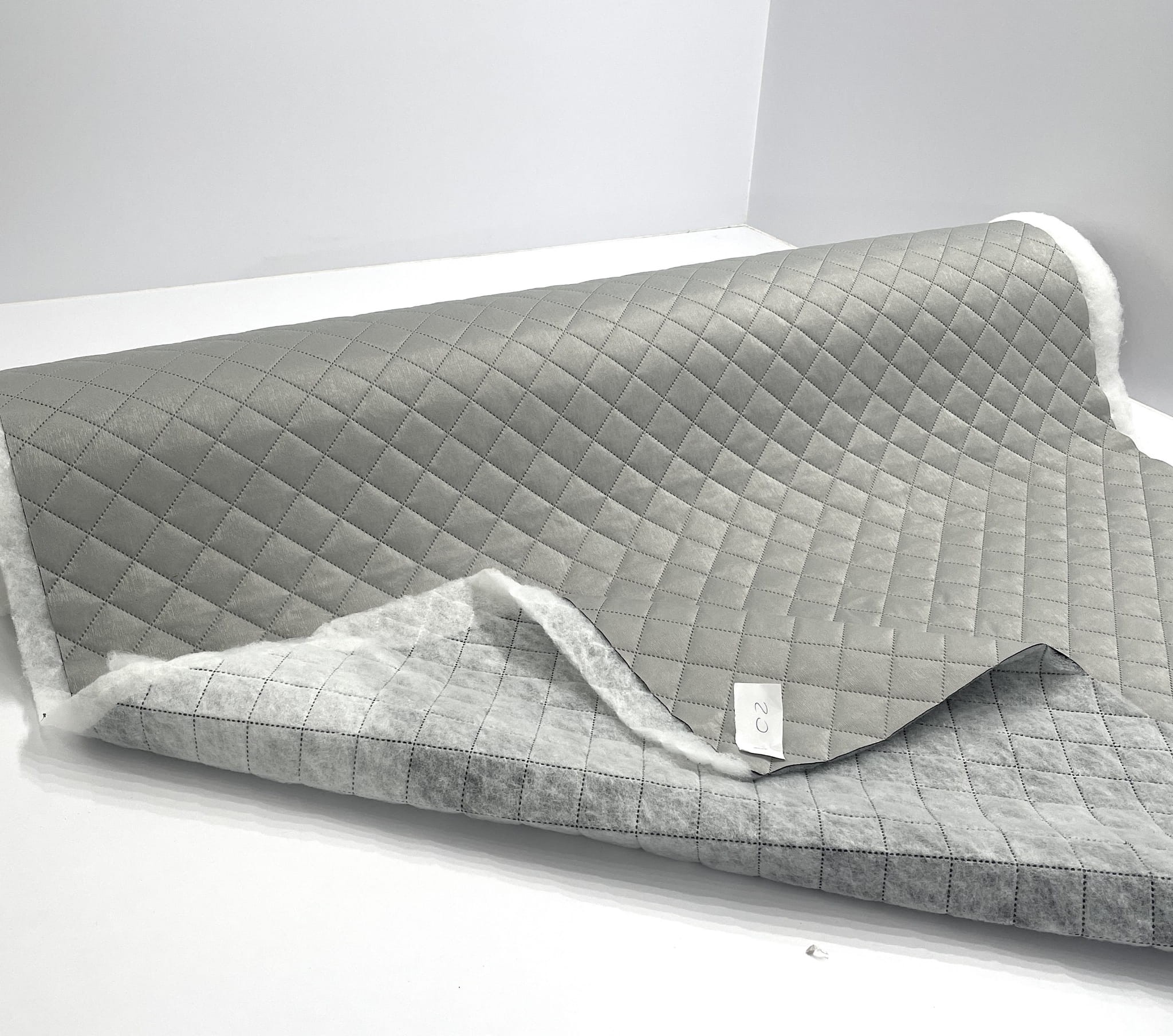 Tkanina BLING Platinum JASNO SZARA z delikatnym połyskiem. Bardzo wytrzymała. Efektowna. Pikowana w romby 5x5 na ocieplaczu 100gr/m2.