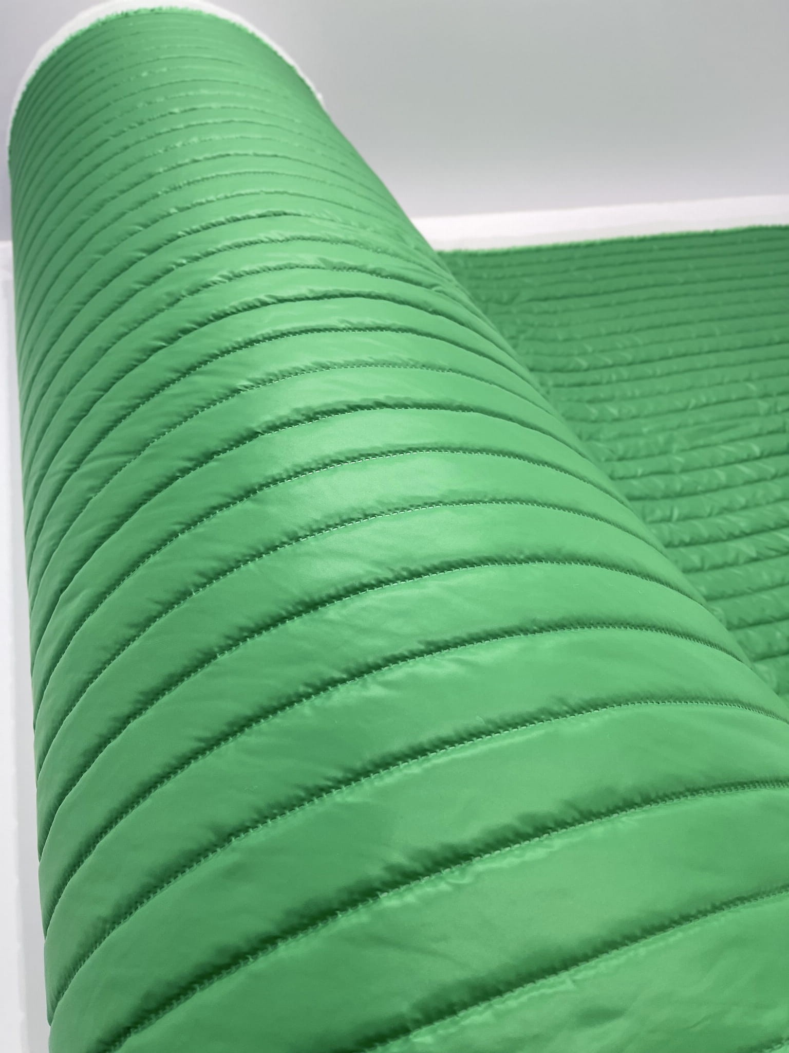 21mb Outlet Tkanina odzieżowa - torebkowa ⭐ PUMI zielona pikowana w Pasy co 5cm wodoodporna ⭐ od firmy ULTRASONIC
