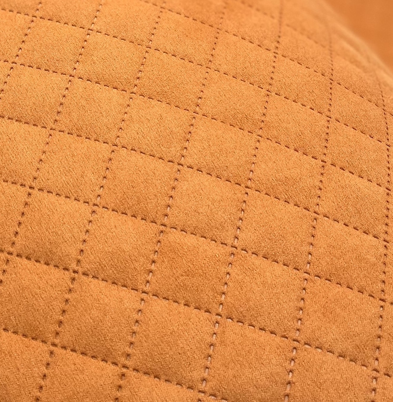 Tkanina obiciowa ALCALA Pomarańczowa to wyjątkowo przyjemny w dotyku materiał tapicerski, pikowany w romby 3x3 cm techniką ultradźwiękową (bez nici) na ocieplaczu tapicerskim o gramaturze 100 g/m².