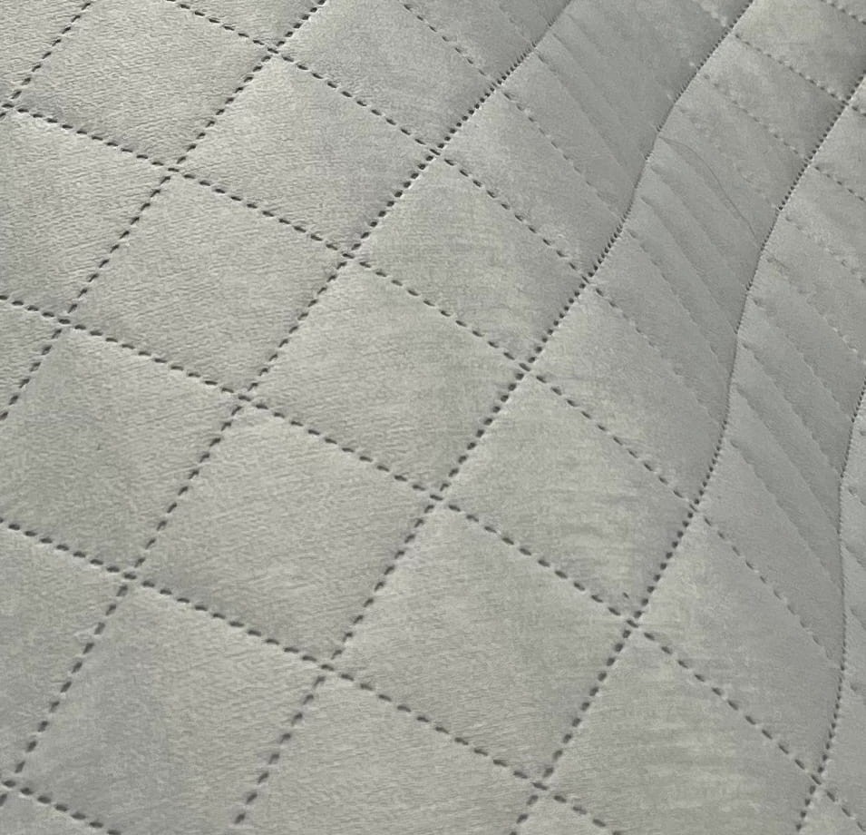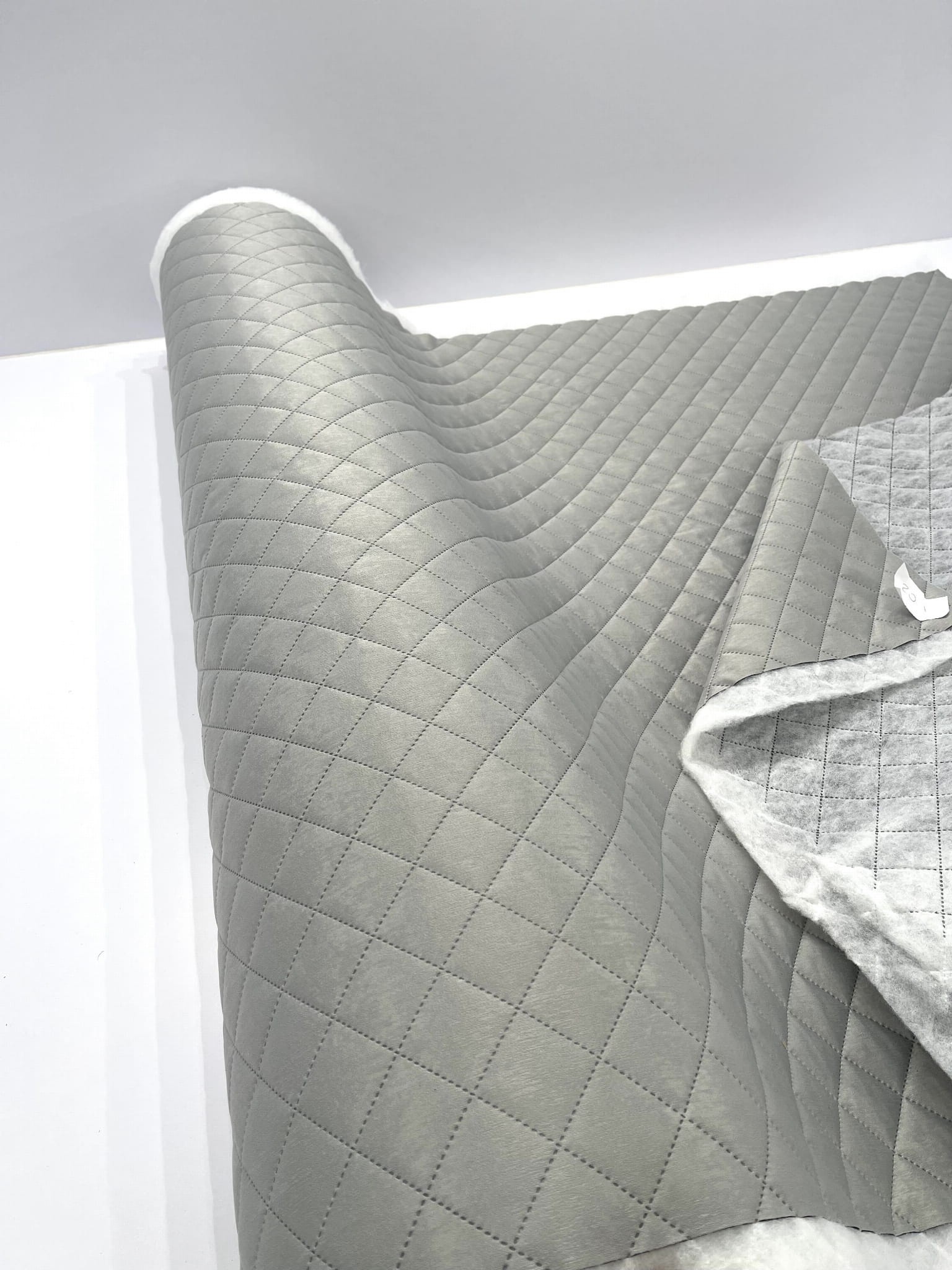Tkanina BLING Platinum JASNO SZARA z delikatnym połyskiem. Bardzo wytrzymała. Efektowna. Pikowana w romby 5x5 na ocieplaczu 100gr/m2.