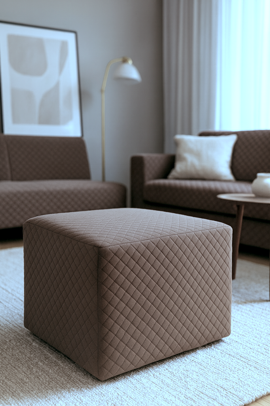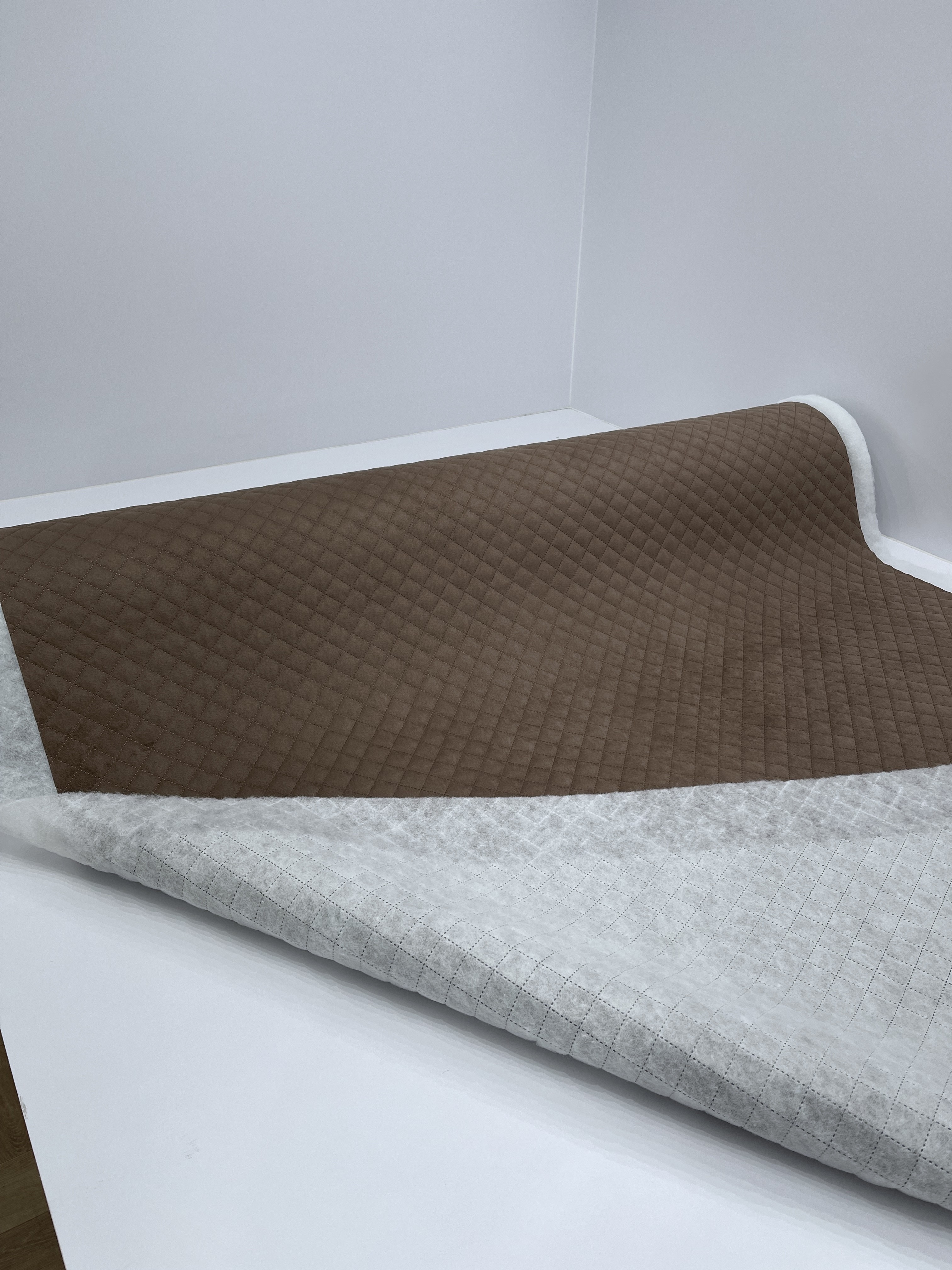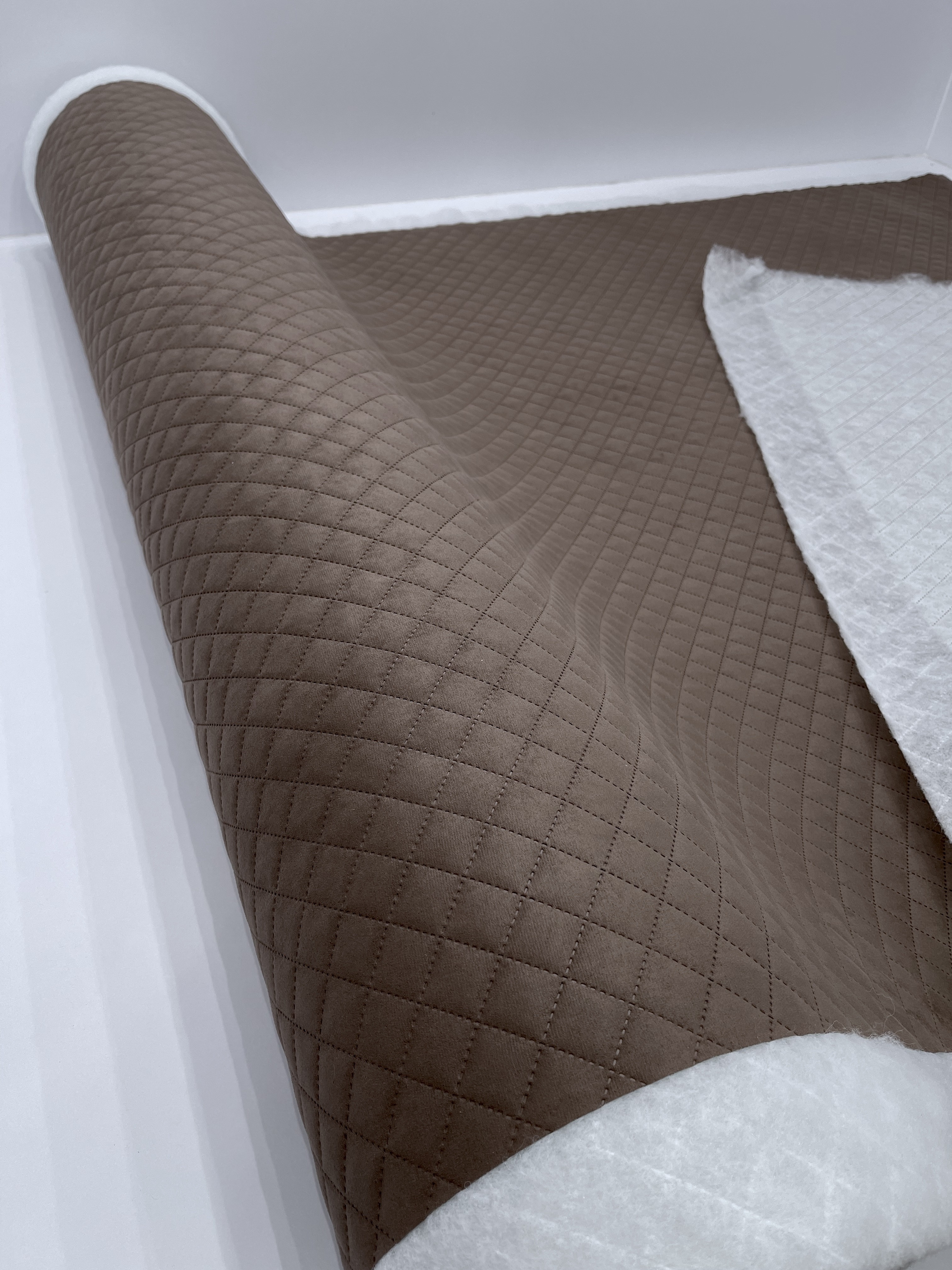 Tkanina obiciowa ALCALA Wenge to wyjątkowo przyjemny w dotyku materiał tapicerski, pikowany w romby 3x3 cm techniką ultradźwiękową (bez nici) na ocieplaczu tapicerskim o gramaturze 100 g/m².