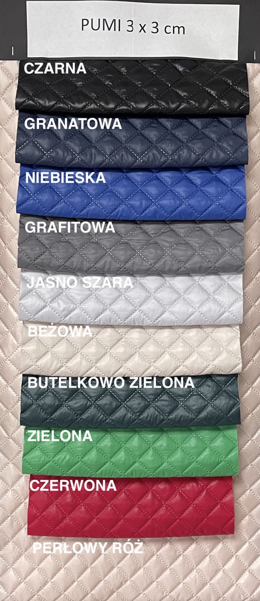 30mb PUMI Tkanina wodoodporna pikowana w 3X3cm Odzieżowa na kurtki torebki Materiał odzieżowy