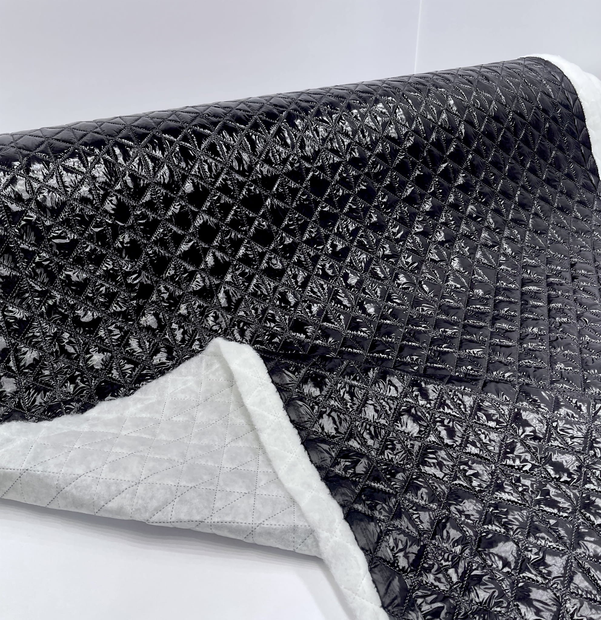 30mb UNICORN CZARNA MEGA POŁYSK pikowana w Geometric Tkanina wodoodporna odzieżowa torebkowa OUTLET