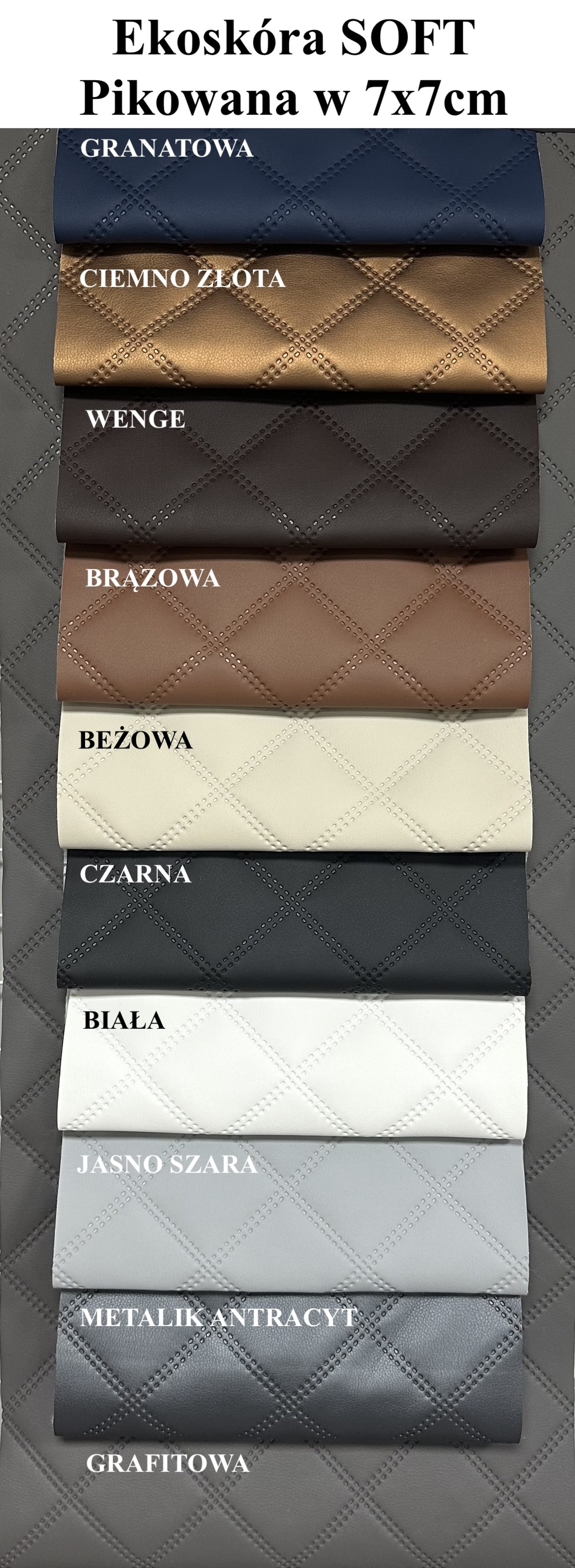 40mb Ekoskóra ⭐ SOFT pikowana w romby 7x7cm ⭐ od firmy ULTRASONIC
