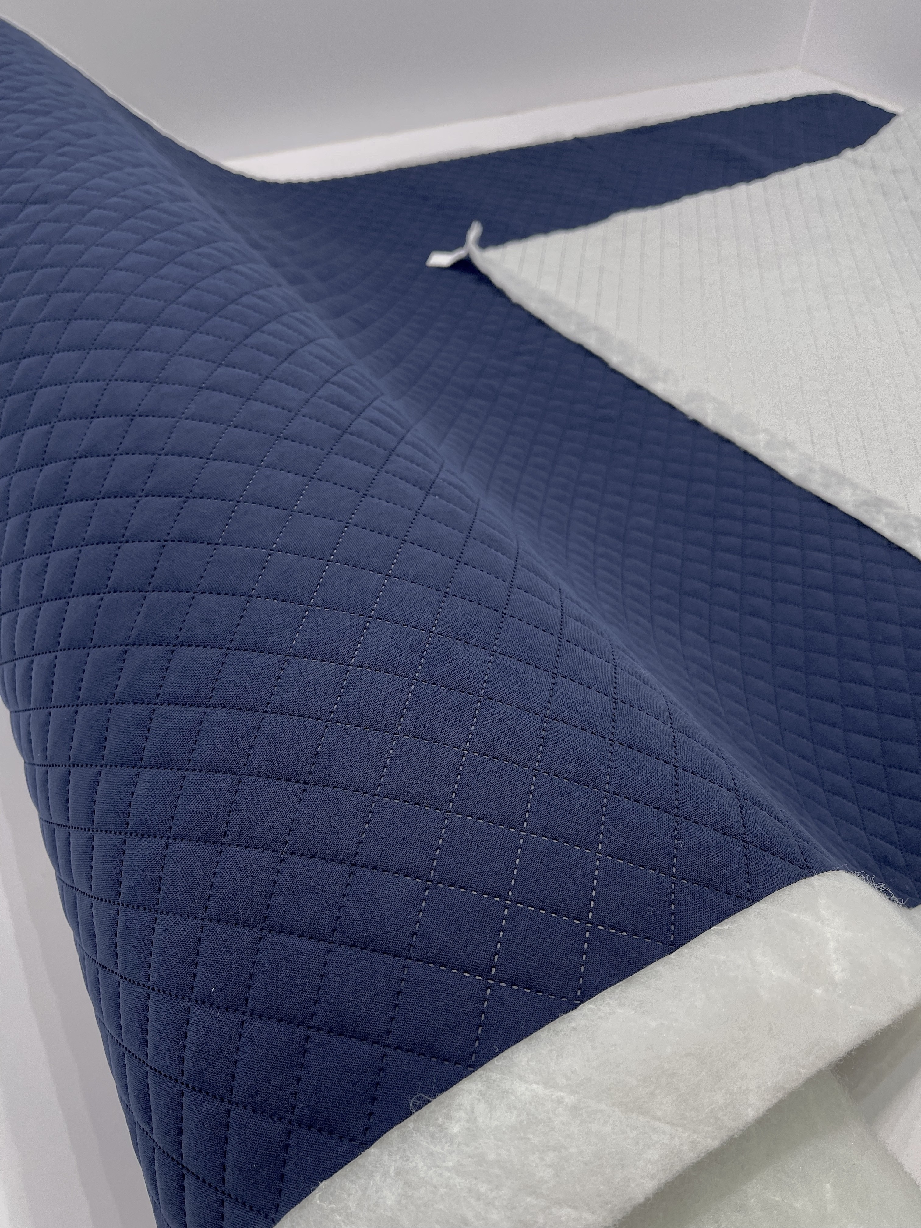 ⭐ Tkanina HAITI ciemno granatowa jest niezwykle wytrzymała, a przy tym miękka i przyjemna w dotyku. Pikowana ultradźwiękowo na ocieplaczu. Doskonale sprawdzi się nie branży kaletniczej, wózkowej i meblowej, jako obicie mebla ale także jako materiał na eleganckie i stylowe dodatki.