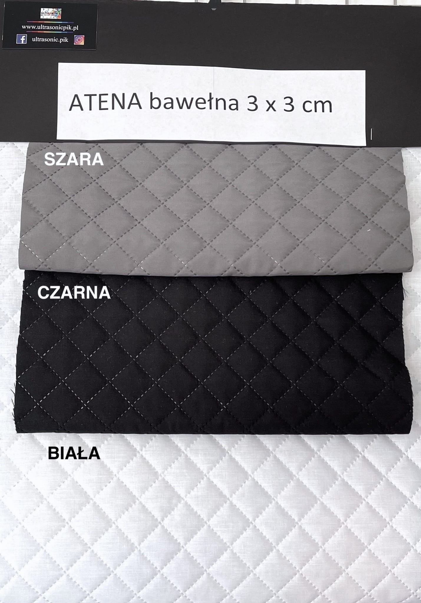 ⭐ ATENA - bawełna pikowana ultradźwiękowo w romby 3x3cm na ocieplaczu kołdrowym. Niezwykle miła w dotyku, z delikatnym meszkiem od strony piku. Dobrze układająca się do szycia. Bardzo efektowna, zadowoli nawet najbardziej wymagających klientów. Łatwe dopasowywanie i docinanie.