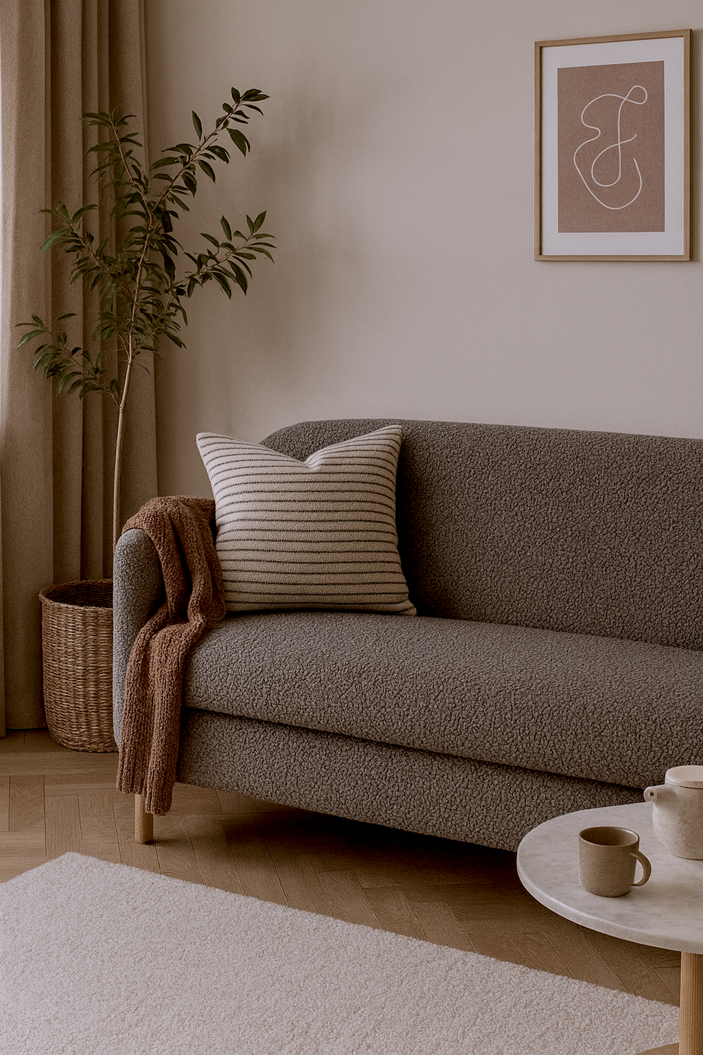 Naturalny, spokojny odcień podkreśla harmonię wnętrza i pięknie współgra z drewnem, jasnymi ścianami oraz dodatkami w ciepłych tonacjach.