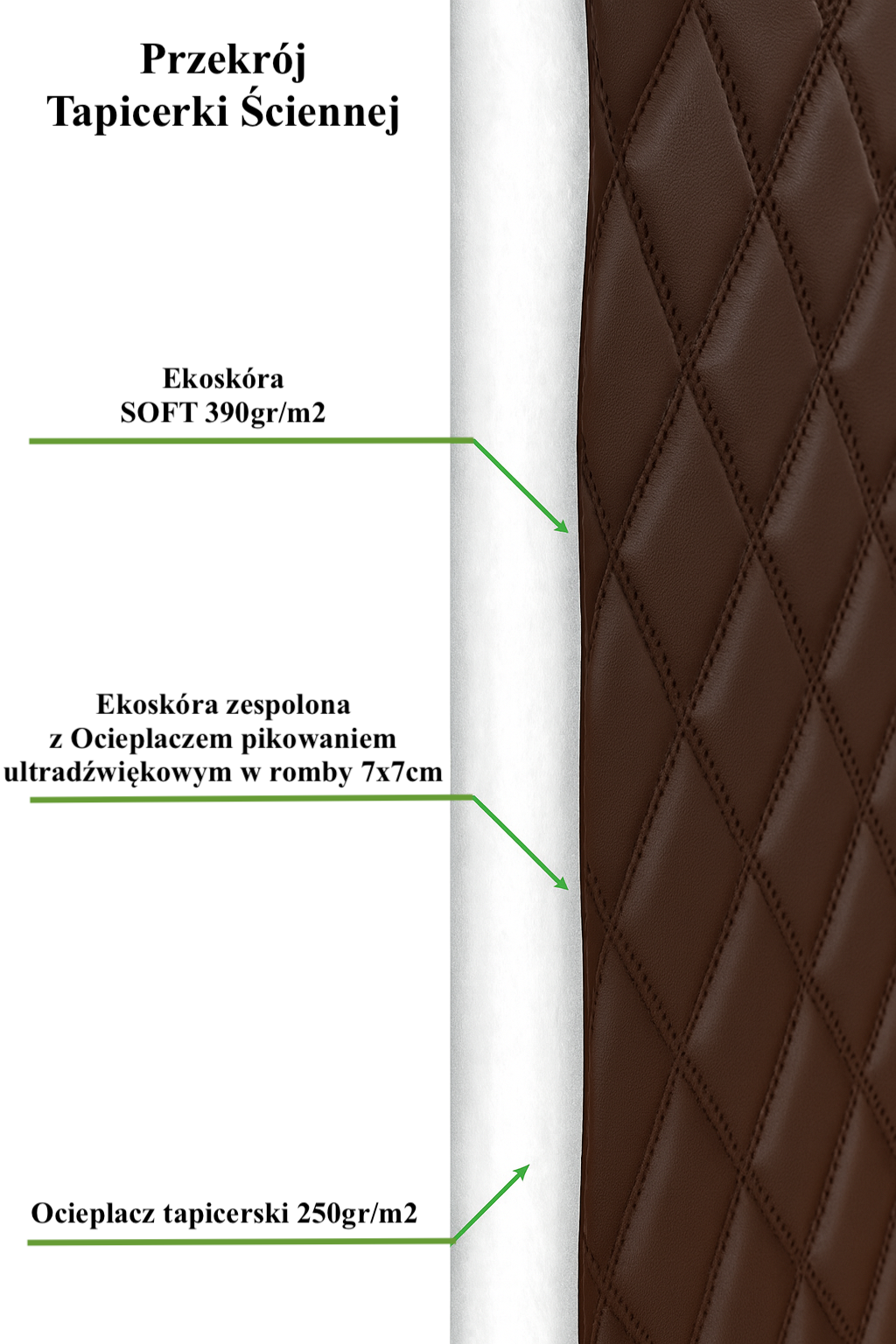 ⭐ Wykonana z eko skóry pikowanej ultradźwiękowo w karo 7x7cm z głębokim efektem 3D, zespolona z grubym ocieplaczem tapicerkim. Spełni oczekiwania nawet najbardziej wymagających klientów.